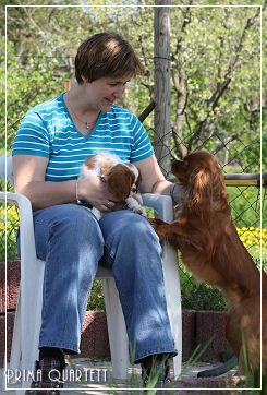 Nochmal schnell mit unserer Menschenmama knuddeln.... und tschüß! ------------------------------------------------------------- Und wieder hoffen wir, dass wir für unsere Welpen die richtigen Menschen gefunden haben. Wir wünschen allen Familien ganz viel Freude mit ihrem B-chen und hoffen auf Berichte und Foto ;o) |